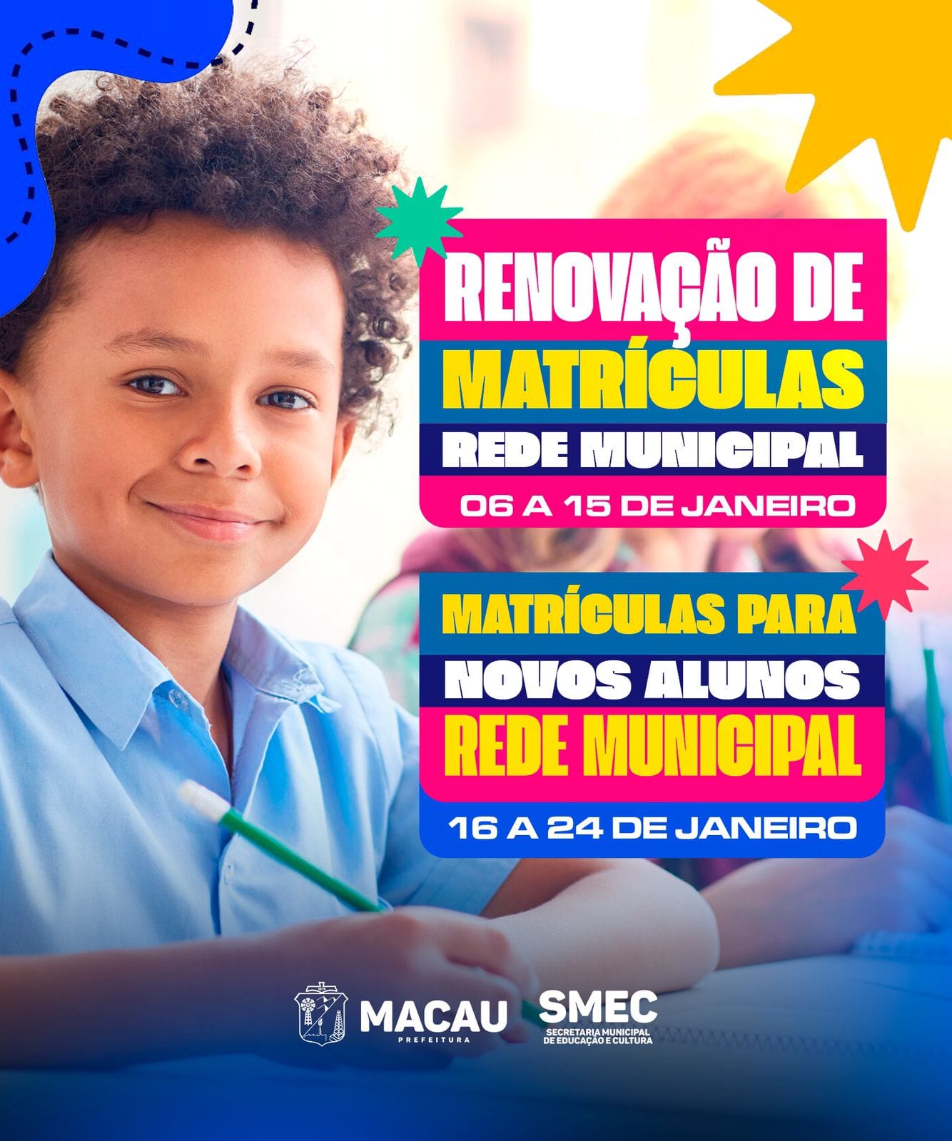 Não perca o prazo, e matricule a sua criança.