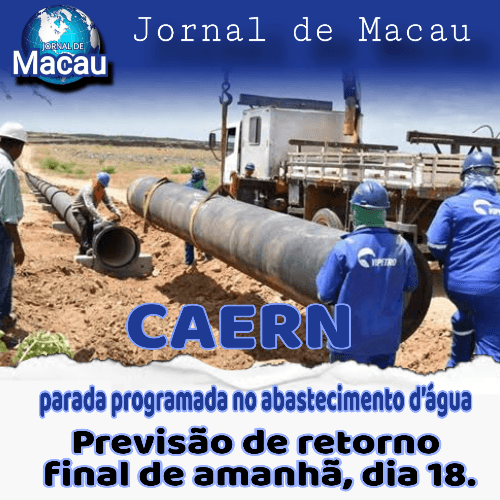 O envio de água para Guamaré e Macau foi suspenso, nesta manhã, quarta-feira, dia 17 de setembro, por motivo de manutenção no sistema de bombeamento.