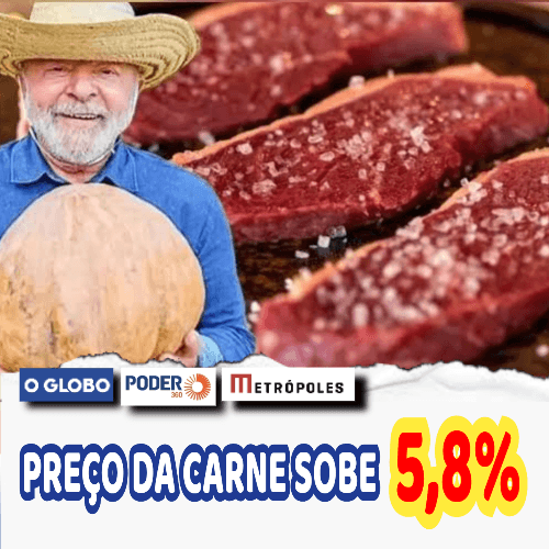 Entre os itens que sofreu aumento está a carne, que apenas neste mês subiu 5,8%, contrariando a espectativa da nação que votou em Lula na esperança de que os alimentos ficassem mais baratos e juntamente a carne também.