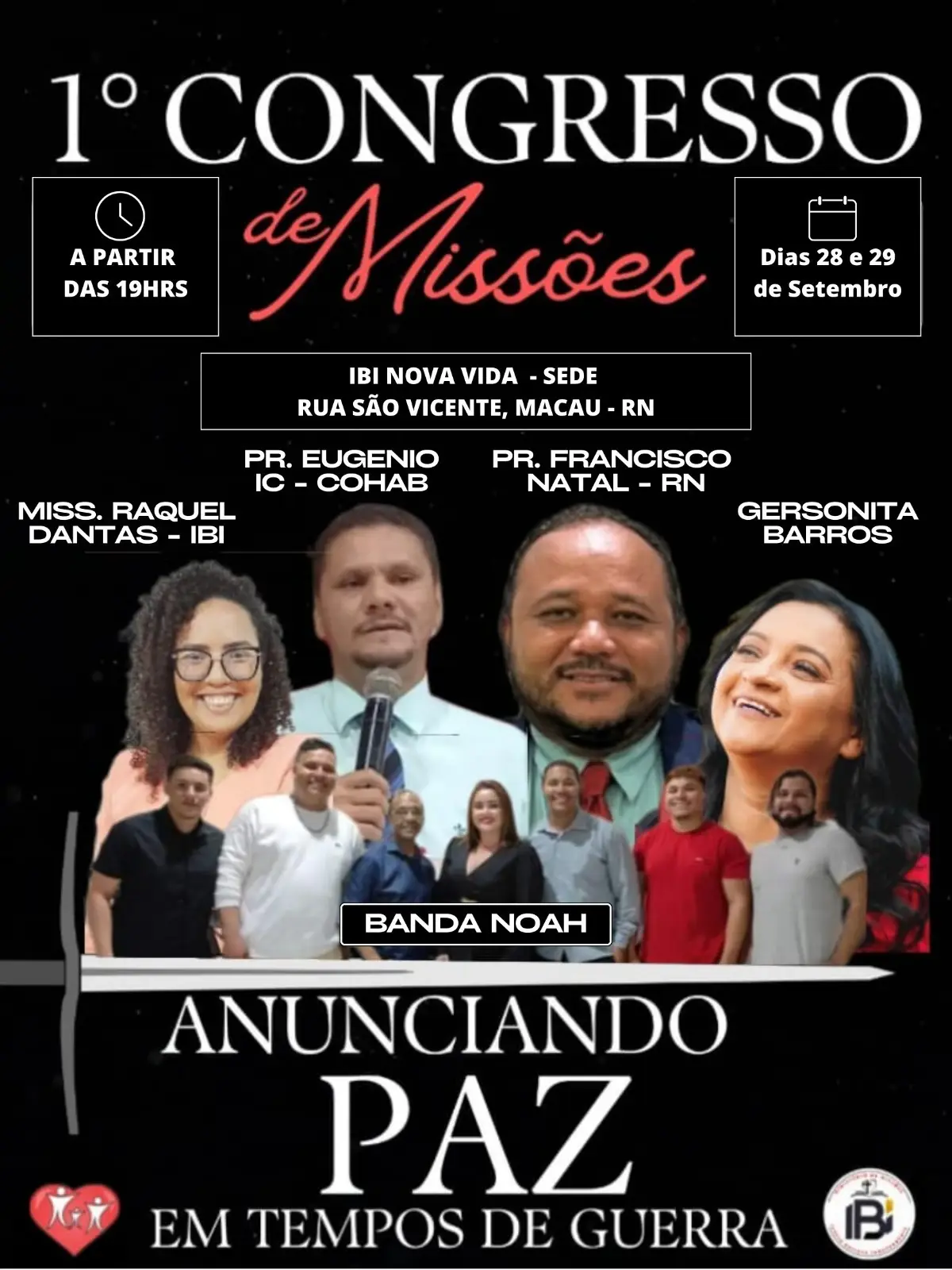O Primeiro Congresso de Missões da Igreja Batista Independente de Macau, acontecerá dia 28 e 29 de Setembro.
